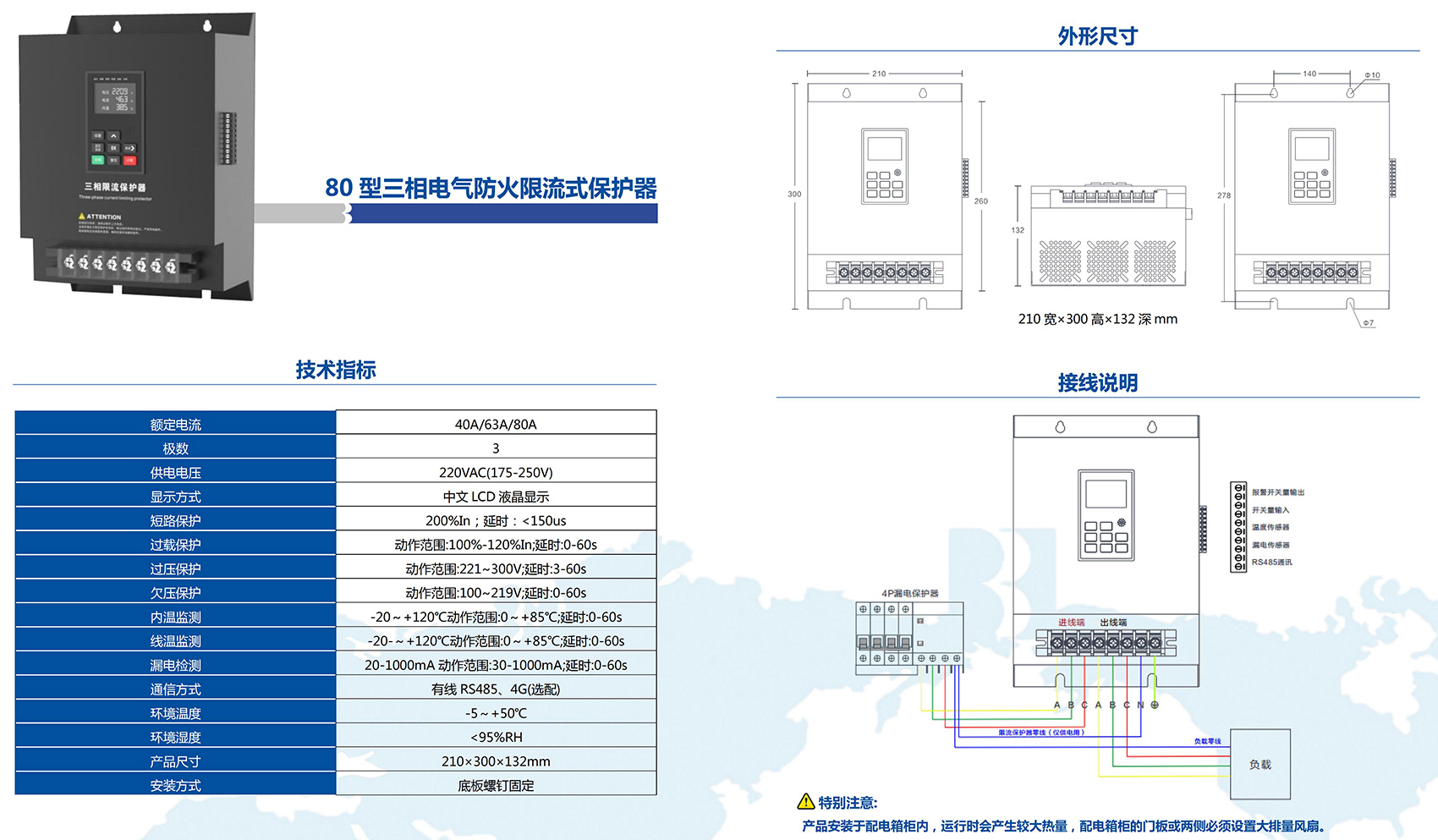 BKFCP系列电气防火限流式保护器,是一款能实时准确检测出用电回路的电流,并能以微秒级速度快速限制短路电流以实现灭弧保护,并集电压、电流、频率、温度(选配)、漏电(选配)等多种功能于一体,且具有智能化分析能力的新型用电安全监控装置。当被保护线路中发生短路故障时,电气防火限流式保护器能以微秒级速度快速限制短路电流以实现灭弧保护,在由短路产生的电流远未达到短路电流前就完成限流,从而预防电气线路短路过程中引起的连续拉弧打火等引燃可燃物造成的火灾事故,保障使用场所人员和财产的安全。